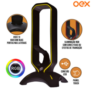 • Suporte OEX game Squad SG-100 com RGB e painel Tou...