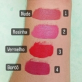 Todas as cores possuem acabamento matte aveludado e textura confortável, que deixa os lábios lisinhos.